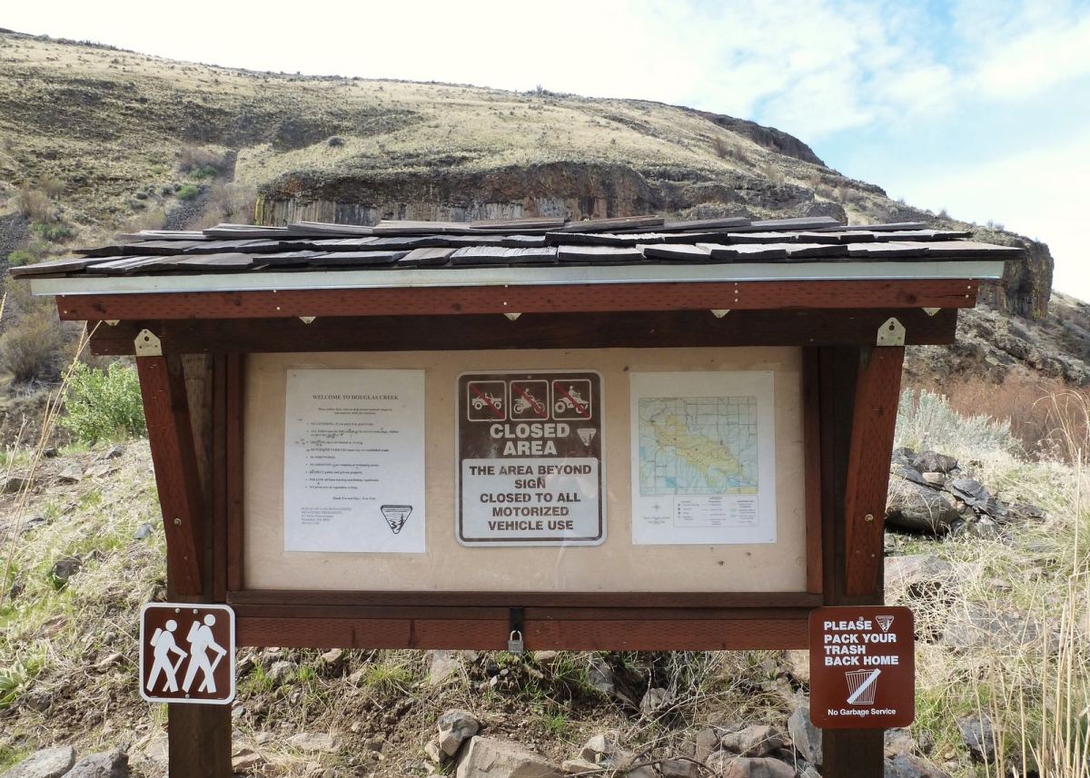 At some point, you have to cross over the creek and there is no bridge, but well spaced, huge rocks that help you cross over without getting wet. The best time to hike this trail is all year round but extra caution is needed, when heavy rain showers occur. Douglas Creek Canyon Trail is a great hike suitable for all skill levels, in a desert looking scenery, different from the alpine nature of the Cascades.
