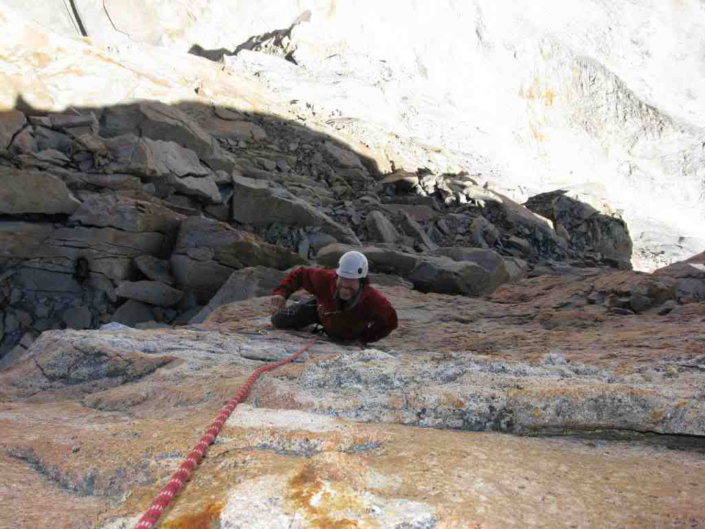 The “In the Eye of the Hurricane” route was first climbed in 1992 by a Swiss and a French climber. They received the Piolet d’ Or award for this difficult and steep rock climb. The route involves about 2970ft/905m of technical rock climbing with 21 pitches, leading you all the way to the top. There are also endless cracks in some sections of this vertical red granite rock.