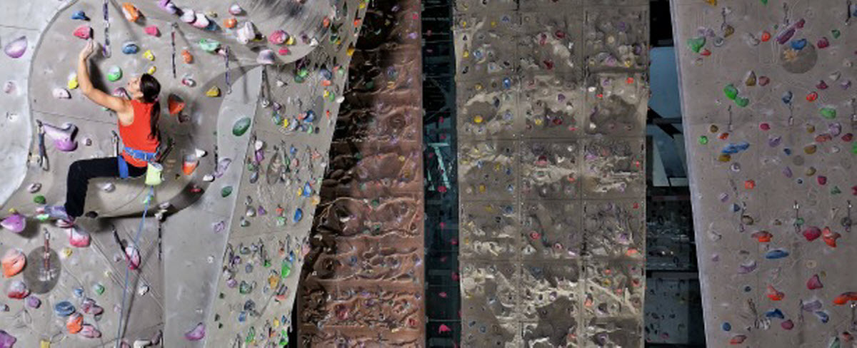 The first hall was built in 1994, hosting up to 17 m /56 ft high walls on all four sides and a column in the middle, reaching up the ceiling. The boulder area in the first hall provides with 15 boulders. The second hall was built in 1996 and it consists of two other hydraulically adjustable walls for different slopes.